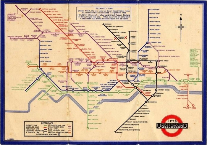 La humanidad atribuye al ingeniero eléctrico Harry Beck la genialidad de diseñar los mapas de metro tan solo con lineas verticales, horizontales o diagonales y sin que la distancia que guardan entre sí las estaciones se corresponda con la distancia real. Fue una intuición genial: a los viajeros no les importa la distancia entre estaciones, les importa saber en qué estación se bajan, y es por eso que todas las ciudades con ferrocarril metropolitano usan mapas similares al que Harry Beck diseñó para el metro de Londres en 1931. Probablemente el diseño de Beck se cuente entre los diez más influyentes del siglo XX.
