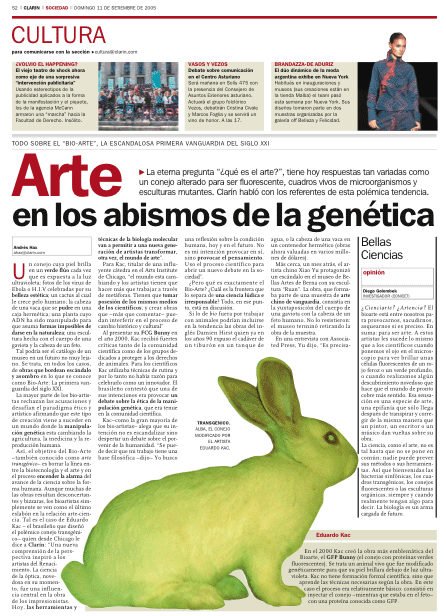 Gracias a esta selección el ser humano creó formas animales tan distintas como un San Bernardo y un Chihuahua o como una vaca o un toro de lidia. Porque el ser humano no sólo ha usado el diseño inteligente para sus necesidades básicas sino para su diversión y entretenimiento. A través de este diseño inteligente el ser humano ha ido premiando unos genes en detrimento de otros; ahora, con la posibilidad de manipulación genética, esta capacidad del ser humano para el «diseño inteligente» ha permitido insertar, por ejemplo, genes de medusas luminiscentes en el código genético de conejos. «Alba» es el nombre del primer conejo fluorescente y dejo al criterio de quien esto lea calificar el experimento como «arte», «diseño inteligente», «experimento científico», «monstruosidad» o cualquier otro adjetivo que prefiera.