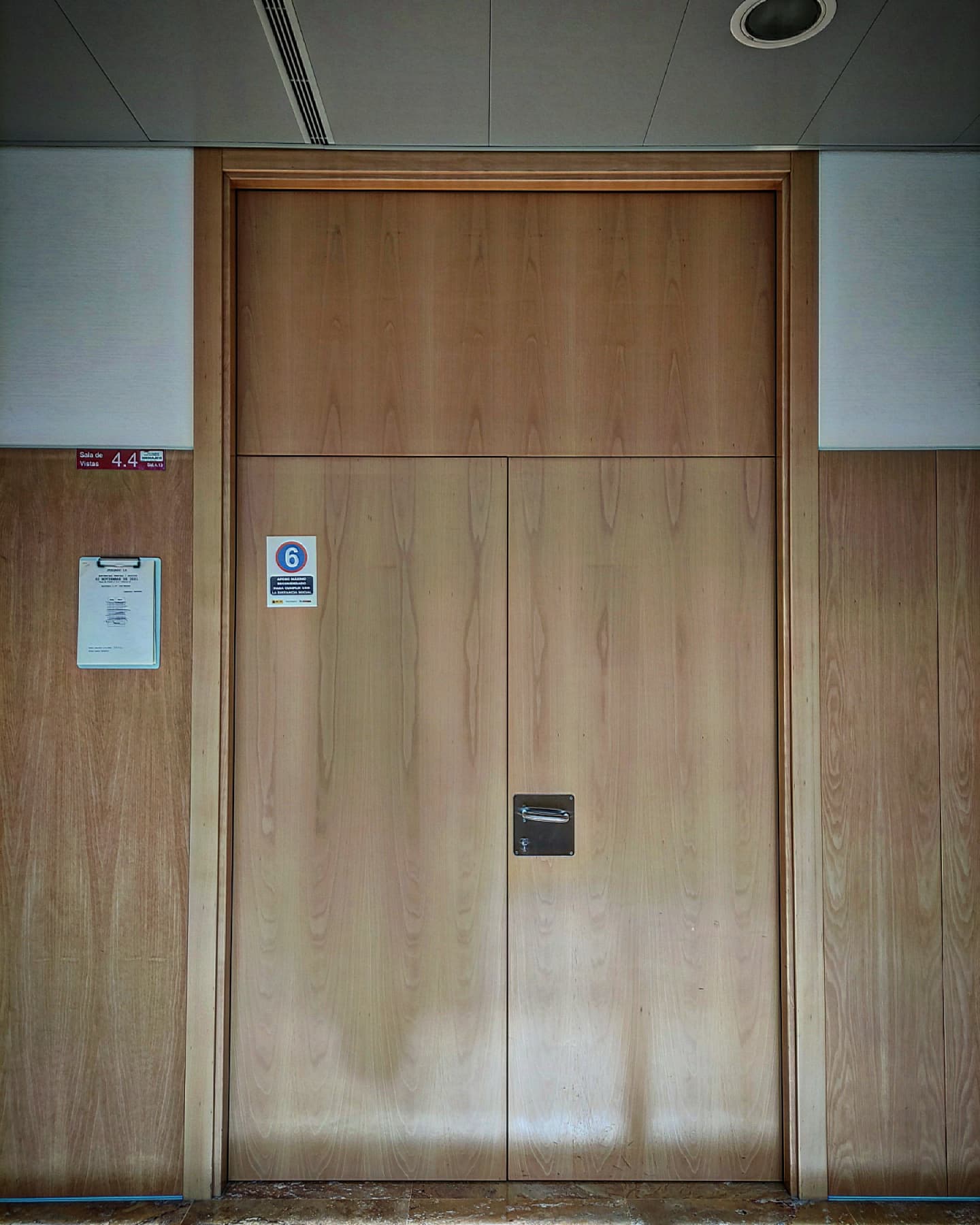 Una de las puertas que ven aquí es de una sala de vistas, la otra es de una sala de un tanatorio.