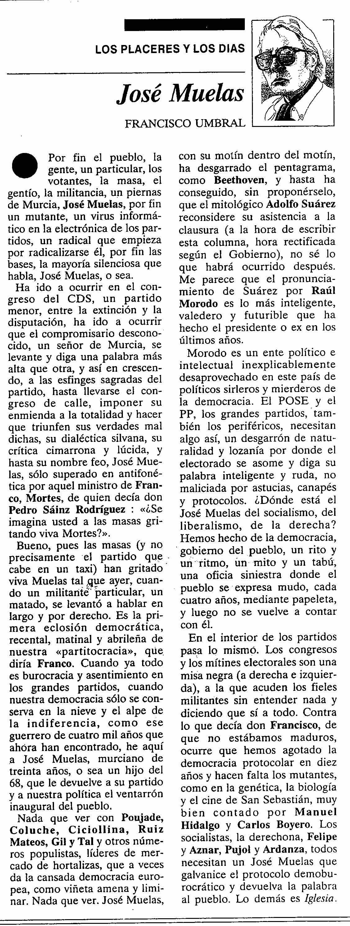 Esa noche Francisco Umbral escribió un artículo que siempre me acompañará y esos días periódicos y televisiones me dedicaron una inesperada atención. Era la vieja historia de David y Goliat, la historia del orador que, contra todo pronóstico, hace cambiar de opinión y de voto a los compromisarios.