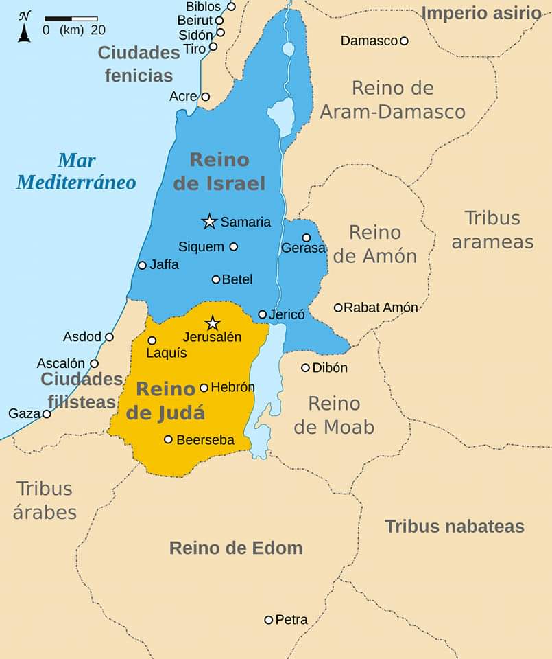 Mapa de los reinos de Israel (Reino del Norte) y Judá (Reino del Sur)