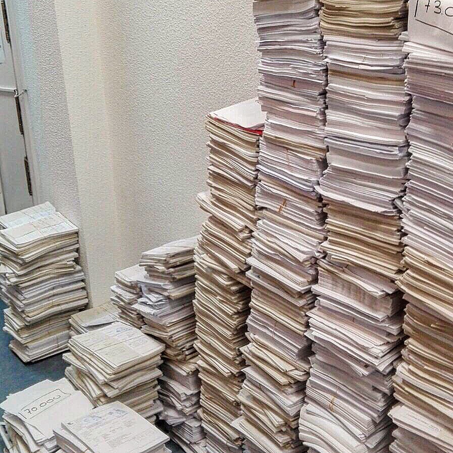 Esto mismo ocurre a dos terceras partes de la población española (sí, en España dos tercios de su población no viven en capital de provincia) pero el ministro —a pesar de las fuertes protestas de todos los profesionales de la justicia, asociaciones de jueces, fiscales, letrados de la administración de justicia, funcionarios, procuradores y abogados— decidió dar el visto bueno al insensato plan provinciofrénico que le propuso un nada independiente Consejo General del Poder Judicial (CGPJ). Gracias a esa insensatez el juzgado especial de Madrid está ya colapsado con 11.000 demandas, la mayoría sin proveer (11 años de retraso), cuando si se hubiesen usado los 101 juzgados de que dispone la Comunidad de Madrid habrían repartido unos 100 cada uno lo que alargaría un mes el tiempo medio esperado de respuesta. Parte de esas 11.000 demandas archivadas en los suelos del juzgado son las que ven en la fotografía que sigue y que es ya viral en la red.