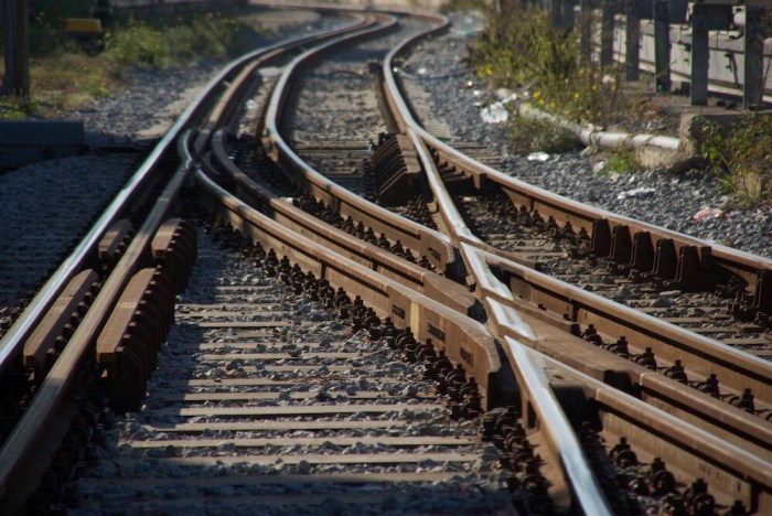 Ya pueden imaginar que esto de los seis carriles (tres por vía) originará no pocos problemas pues, a poco que lo piensen, se darán cuenta de que uno de los raíles será utilizado en el 100% de las ocasiones mientras que, los otros dos, se repartirán el uso en proporciones aún por fijar, lo que determinará un desgaste diferencial de los raíles no deseable. Y, sin embargo, el anteriori es, sin duda, el menor de los males. Es el menor de los males porque el verdadero problema es que lentos y pesados trenes de mercancías (el Puerto de Cartagena es el primer puerto granelero de España por tráfico de mercancías) compartirán los raíles con trenes que pueden superar los 300 kilómetros hora. Para que se hagan una idea, un AVE puede y debe disponer en las curvas de unos peraltes más pronunciados que los de un lento tren de mercancías; un AVE puede superar desniveles que un pesado mercancías no puede atacar y, en fin, una vía para tráfico de mercancías no es el tipo de vía más aconsejable para el AVE. Si a esto unen ustedes que la existencia de tres raíles convierte los cambios de agujas en un puzzle tan poco divertido como eventualmente peligroso (vean foto) comprenderán que lo que quieren traer como AVE a la Región de Murcia no sea sino una burla más a los habitantes de esta región.