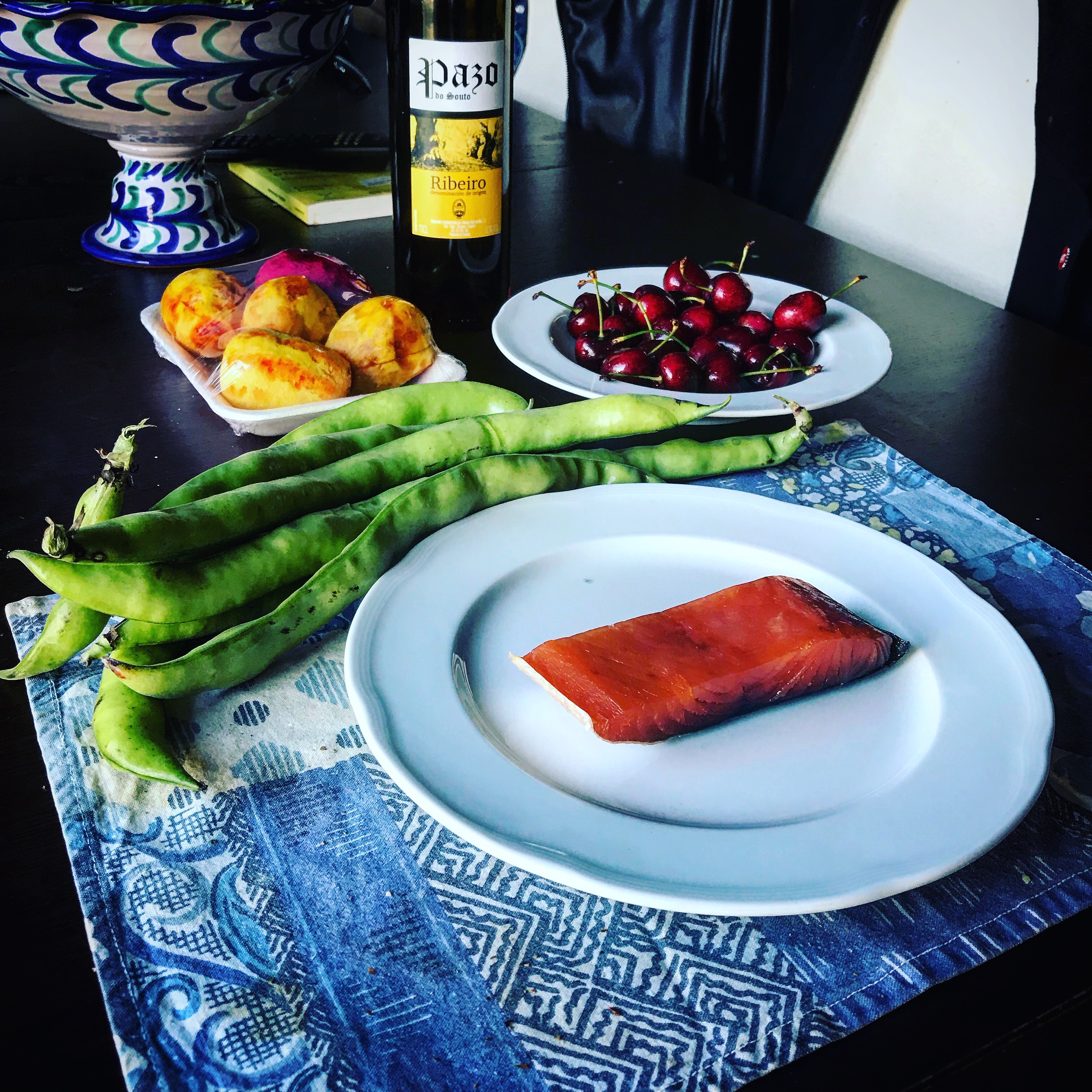 Todo ha sido ponerme la muchacha de los Fuentes el trozo de salmón en la mano cuando he sentido como una llamada de los 37 billones de células de mi cuerpo y de los más de cien billones de microbios que lo parasitan que parecían agitarse como queriéndome decir: «Pepe, compra habas».