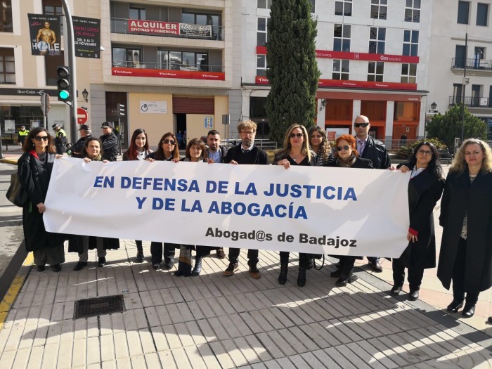 Como el horno no estaba para canapés ni brindis, unos cuantos abogados y abogadas pacenses agarraron su pancarta y —aprovechando la presencia de autoridades— se fueron para el colegio; no porque estuviesen invitados a los actos protocolarios, sino para explicarles en directo a las autoridades que, en Badajoz, la tropa no cobra desde Agosto y que acudir a las fiestas está bien pero que está mucho mejor cuando antes has pagado lo que debes a quien te invita.